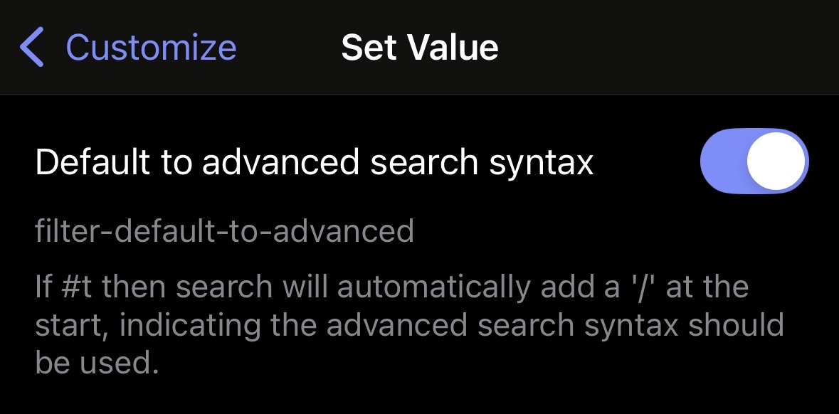 If you are ready to use this new syntax fulltime you can get beorg to automatically add the \ when you start a new search: